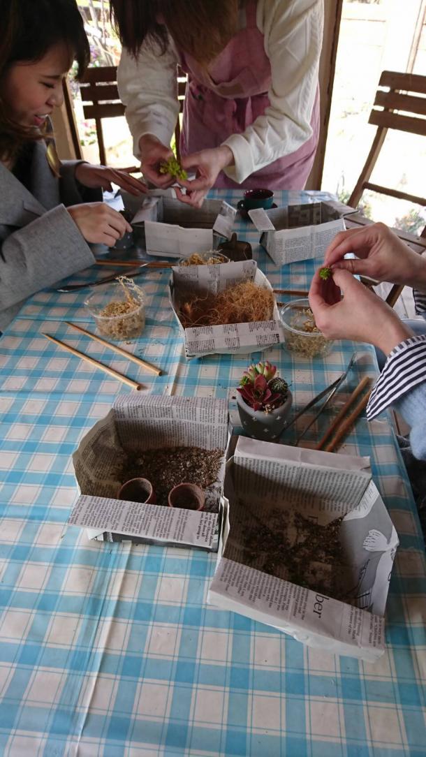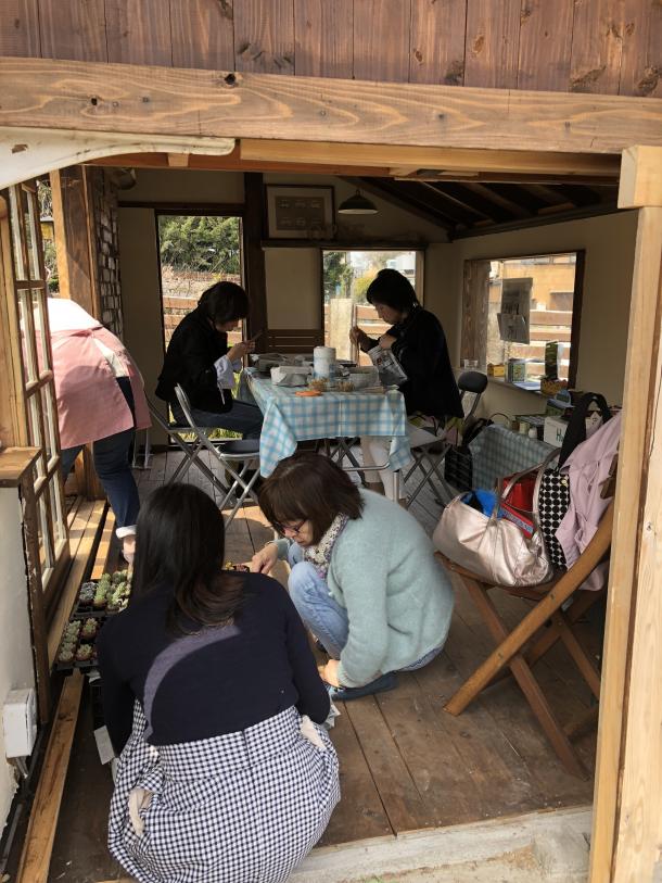 ログハウスでは、多肉ちゃんのワークショップ♪
