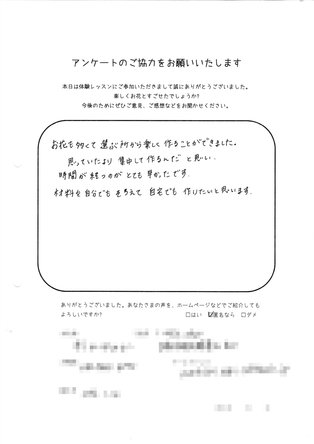 お客様の声 2018.02.09 アンケートのご紹介 名古屋市緑区 Y.K様 ご意見・ご感想ありがとうございますm(__)m Category:お客様の声 タグ:お客様の声 Author:hummingbasket